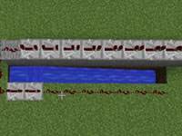 首先挖一个1*9的坑,并且在第二格放上水(根据水流距离是7格,所以挖了9格长)