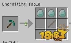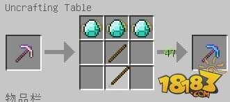 如图,在左侧是一把附魔金镐,在显示金块的地方放上钻石并补上木棍,就可以把金镐的附魔转移到钻石镐上,同样需要经验