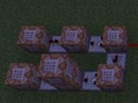 之后就是真正的计算部分了。全电路在图片的左边。第一步是探测任何deathCount积分板为1的玩家,也就是刚死过的玩家,一旦探测成功后会把该玩家的dummy积分板-1。之后就把该玩家的deathCount重新调回0,所以最终的目的是,玩家每次死亡都会把dummy变量-1,这样就是控制玩家生命数量的显示。之后就是探测任何dummy变量为0的玩家,也就是把所有生命次数都用完的玩家。当探测成功后,会给出输出,然后会把该玩家TP到一个观战区,并给该玩家冒险模式。还会有一条提示,说明该玩家的生命已经全部用完。之后会把该玩家的dummy变量变成-1,这样子就不会和其他活着的玩家搞混。当重启游戏后,所有玩家的生命都会回到5。最大生命可以自己调,比如3条生命也可以。