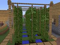 如下图放栅栏(无高度限制),在最顶端栅栏右键点击绳子使用,把绳子按如图形式绑好,绳子下方锄地后,右键种上啤酒花种子即可(先锄好地再拉最后一条绳子)