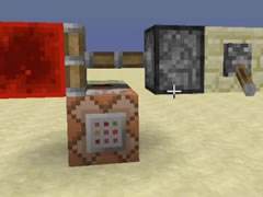 接下来说说怎么建造。首先第一步就是放下一个指令方块,打入指令。(/summon FallingSand ~ ~1 ~ {Tile:152}),之后在指令方块的正上方,放一个红石块,之后脉冲就开始了。