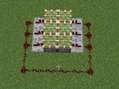 如图,我们先在想要放置蹦蹦床的区域向上放置粘液活塞,再在途中位置放好红石与红石中继器。