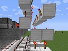 那个为了能控制脉冲特地又加了一排红石火把,用中继器穿起来,并加个拉杆。(拉杆拉下时这一串火把熄灭,电路正常工作。)