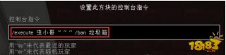 右键打开命令方块 输入/execute <自己的名字> ~ ~ ~ /ban 垃圾箱 ,用红石激活命令方块,就可以把这个玩家封号了