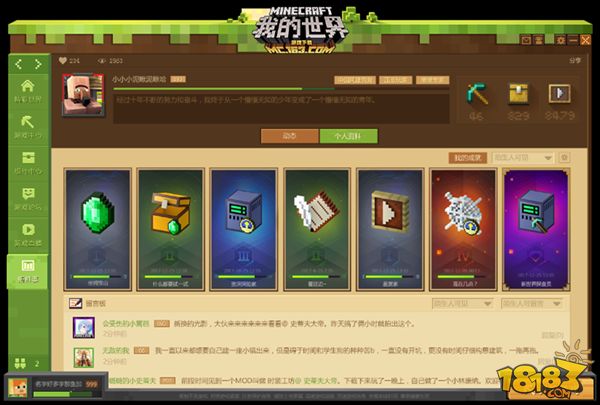 随着游戏体验的不断优化、组件资源的持续引入,《我的世界》自由创造的乐趣已经吸引了数以千万的国内玩家。令他们更加惊喜的是,《我的世界》PC Java版在最新版本上线了个人主页、新鲜事、群组聊天等诸多功能,全新升级的社交体系让“我的世界”瞬间变身“我们的世界”。