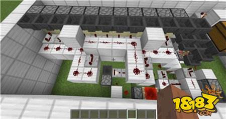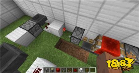 8:在拉杆后方放置一排向上的活塞,活塞上放两个重力实体方块,例如沙子