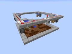 在图中位置放置活塞。短脉冲发生器输出端的红石火把在这个位置可以同时控制这两个活塞。