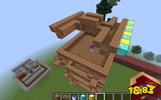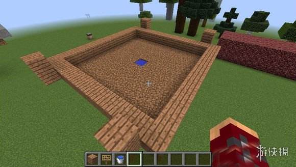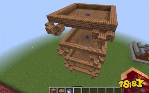 第一步,做一块9*9的地,中间把水放上,下面用告示牌堵住。
