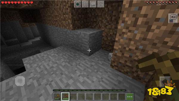 砍树的时候我们看到一个小矿洞,我们先用木镐去挖几块圆石备用~(后面我们做熔炉会用到它哦!)