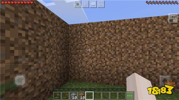 游戏里泥土是很容易获得的,所以我们先在旁边挖一些泥土,然后围着出生点盖一圈围墙。