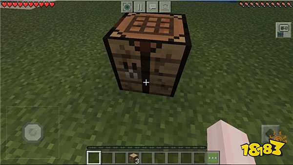 关掉物品栏界面,点击快捷物品栏里的工作台,工作台就会自动拿在手上~把画面准心瞄准地上任意位置,点击画面,工作台就放到地上了!