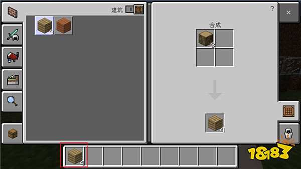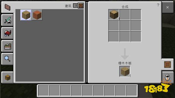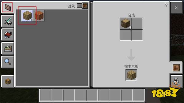 《我的世界》电脑版合成物品需要根据合成配方,在合成栏里将材料按配方的数量、位置进行摆放,才可以合成想要的物品,但手机版里更简单了~这里可以自动合成物品!我们点击物品栏左上方的“墙”标志,就可以看到橡木板的图标。