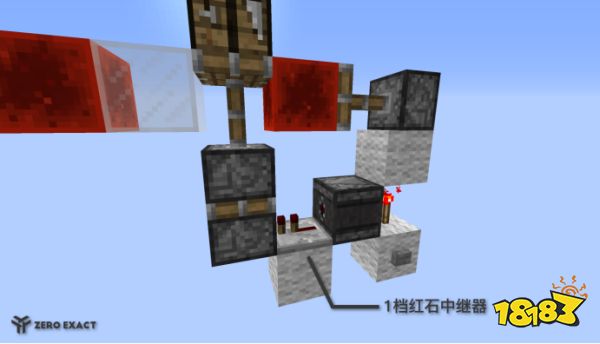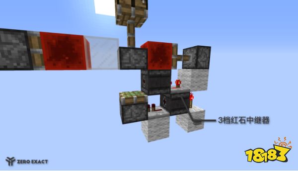 5. 利用侦测器检测一个3档红石中继器,发出的脉冲用以完成二段递归的最后一步回收。
