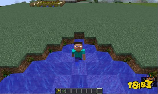 随身带着一桶水,走到草丛中间倒水的话水流就会把流经区域的草丛破坏掉,从而掉落大量的种子可供种植。在平地上倒水会形成一个对边长度为15米的正方形。这时我们在圈地撒种即可完成小麦种植,之后就可以等待小麦成熟后收割了。