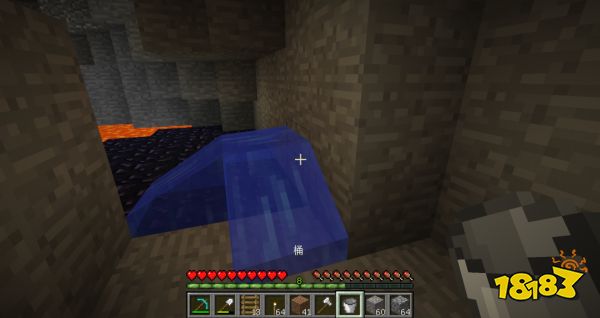 挖到岩浆后,先不要急着将岩浆旁的矿石挖掉。