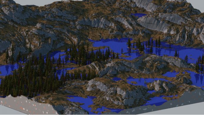 这件作品如果没有近景的话我们甚至无法区分这是3D模型还是《我的世界》,然而这确实是游戏中由方块组成的地图。