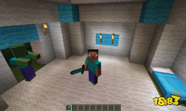 但是在《我的世界》里可能碰到更多的是睡觉气,当玩家想依靠睡觉度过漫漫长夜的时候发现在进门的时候有怪物跟了上来,这个时候就要关门放史蒂夫了。
