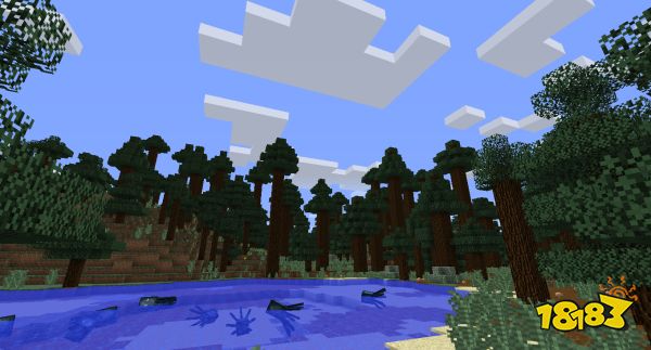 如果发现周围的树、草地和水颜色较深,树上还挂着很多藤蔓,地上还有坑坑洼洼的水坑,那么你的出生点就是沼泽了,这里不仅会生成很多甘蔗,这里也是唯一能大量生成史莱姆的地方。
