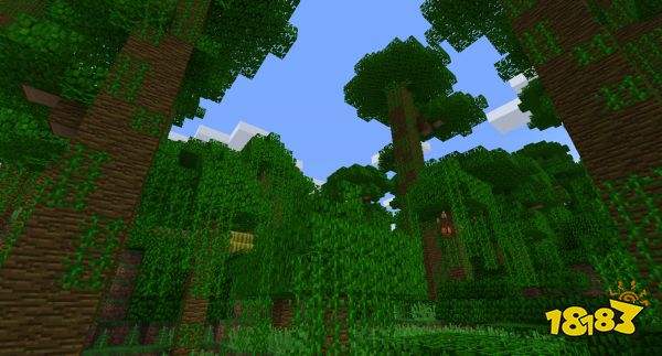 周围都是密密麻麻的丛林树,树上都挂满着长长的树藤,为日后的生存提供了很多木材。这里还是唯一可以生成西瓜、可可豆和豹猫的地方!