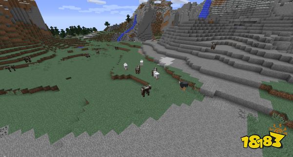 如果发现周围都是主要由沙砾和几小片草和泥土构成的山峰、数不多的云杉木和一些牛、羊和羊驼的话,那么你就是出生在峭壁啦!这里还会有一些裸露的煤炭矿石!