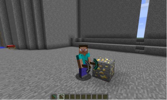 由于金矿石是一种比较稀有的矿石,所以只能用铁镐或钻石镐开采,否则只会摧毁矿石。