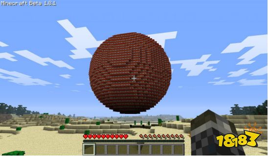 正是由于圆的制作困难,球体的建造难度也在圆形的难度上成倍的增加,同样的道理只有当半径越来越大时我们建造的球体就能越来越接近标准的球,这里展示的是玩家enspe建造的TNT球,一旦点燃绝对壮观。