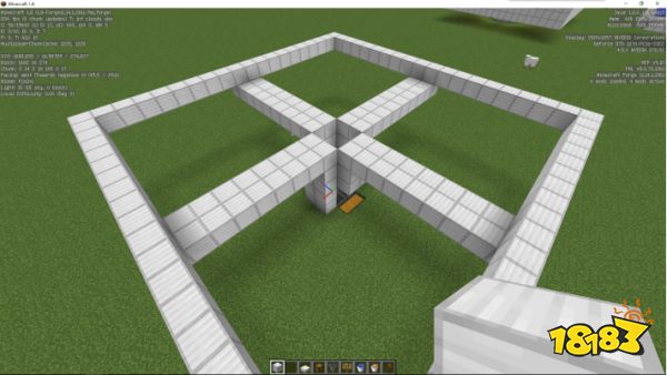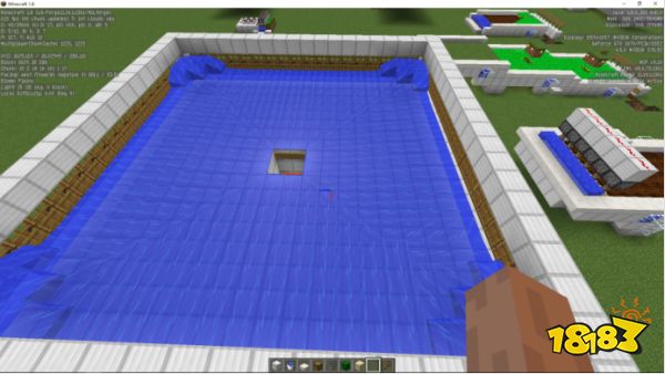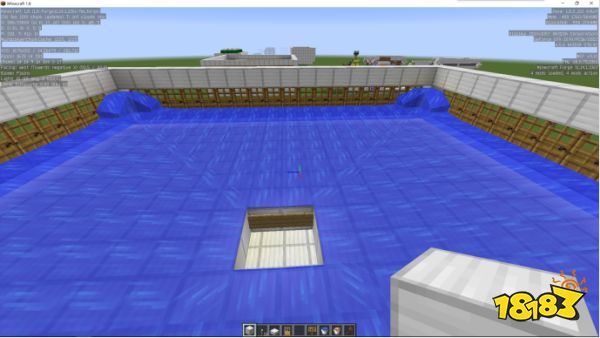 第四步:将中间挖出一个2*2的坑,这样刚好铁傀儡可以通过,然后在洞的周围放置告示牌用来阻挡水流。