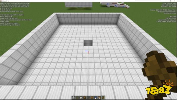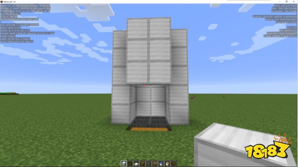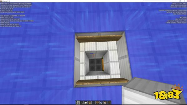 第一步:放置漏斗与箱子,做出收集装置,用来收集掉落的铁锭。