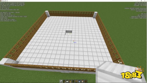 第三步:在村民储存室上方搭建一个平台,在四周放置木门(必须要是木门才满足房屋的判定标准),放置的时候可以从外往里放,这样确保门开开后是朝里面的。