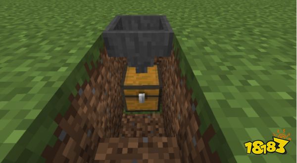 第二步:朝坑里放一个箱子和一个漏斗作为收集装置