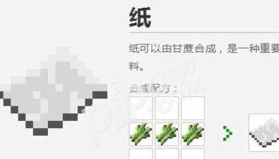 可以用来合成我们的书本,书本之后再合成附魔台、书架这两个,所以说纸的作用还是非常有用的,不过纸的制作也是很简单,不会特比的难。