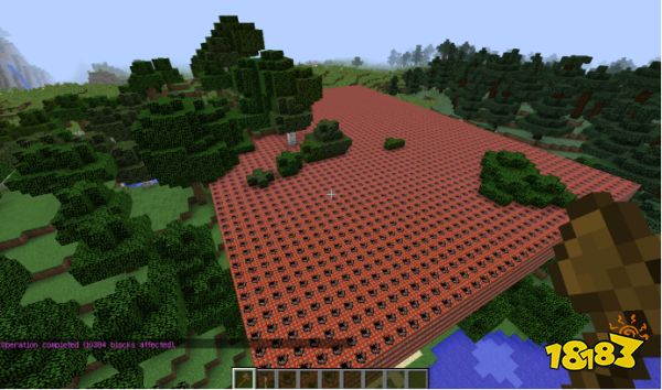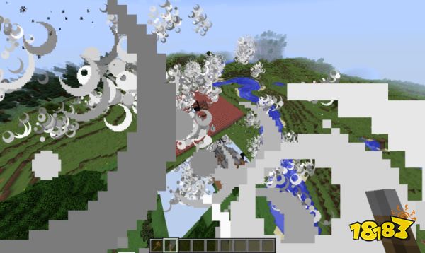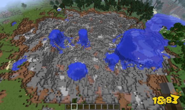 而结果也很明显,超过3000个TNT爆炸的结果是直接改变了地形,制造了一个天坑出来,不过坑中心的喷泉是怎么回事?