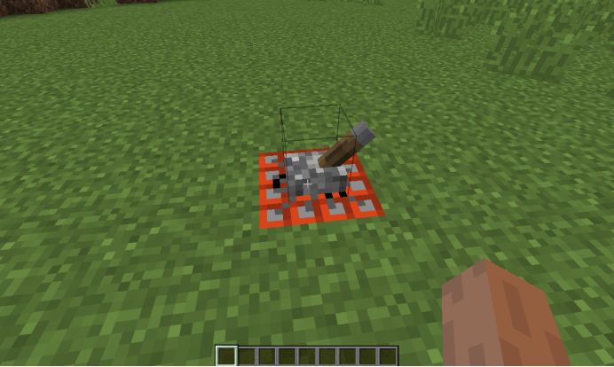 这是一块60X60的TNT地毯,我们在靠近中心的部分放置了拉杆,屏幕上的红色预示出满满的危险。