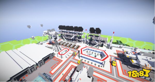 在基地中我们可以看到各种建筑和设备,而地面上的红色线路可能就会依靠红石研发的新能源科技。