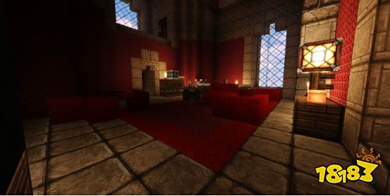 宫殿中的房间铺着红色的地毯,坐在沙发上,手里端着一杯红酒,借着明亮的灯光看看书整个身心都能很快的平静下来。