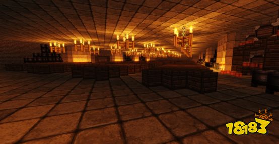 宫殿由于地处偏僻,玩家专门为宫殿建造了一个很大的储物室,里面除了放置一些生活必须品,还有从其他各国带回来的特色物件,金黄色的灯光下,这里就是一个巨大的藏宝库。