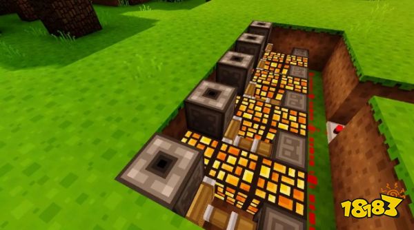 10、最后,自动烟花装置就完成了。现在我们将红石线路用草方格隐藏起来。大功告成。