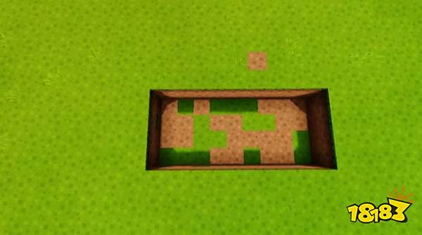 2、然后在这块地上挖出宽度为9个方块,长度为4个方块,深度为2个方块的凹槽。