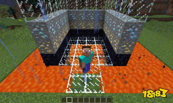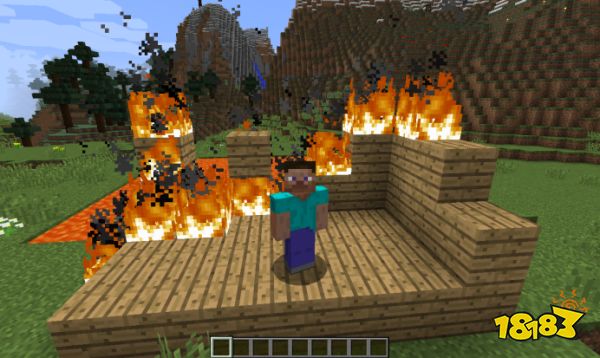 在岩浆周围盖房子是一个有利有弊的事情,因为我们在建房子的时候出于美观的考虑会使用木头盖房子,但是如果碰上了岩浆点燃房子的事情就非常悲催了。
