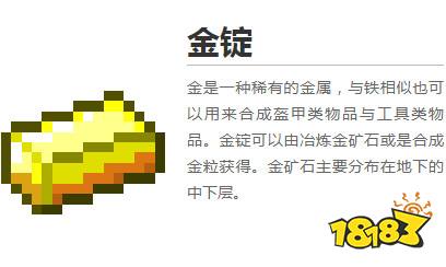 金锭是可以通过冶炼金矿石或者是合成晶粒来获得,而金矿石主要是分布在地下的中下层的,所以需要挖到比较深的地下,才有比较大的概率能够获得。