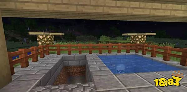 萤石可以放在栅栏上面照亮后院,后院制作一些池塘或通往矿洞的地道。