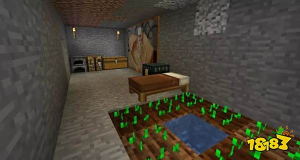 在矿洞中挖出一个比较大的空间,不用特殊的点缀,种一片田,插上火把