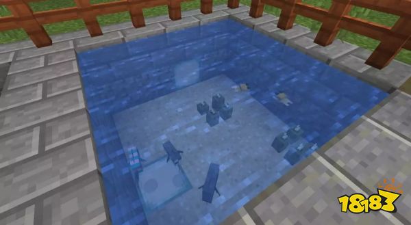 池塘内就使用海晶灯和海泡菜照亮并修饰,再放进去些鱼儿为池塘增添生机!