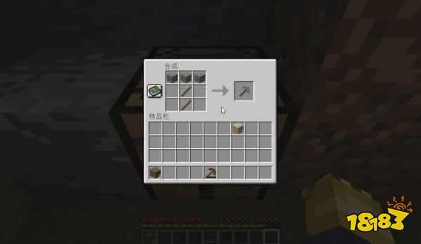 正如刚才所说,进度都是一环接一环的,相信各位不难猜出,达成这个进度的要求便是用刚才挖掘的圆石做出一把石镐。