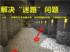 二、解决迷路问题;方法一:在右侧墙壁插火把,记住,一定要在右手边插火把,这样回程的时候,才能辨别方向;方法二:利用圆石分清方向,圆石顶面材质方向是永远不会变得。所以若你熟悉它,你可以随时确定方向;方法三:用告示牌标记方位,地名,是最清晰明了的方法;