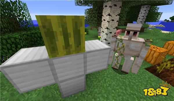 将图中的原材料摆好,并且使用南瓜或者南瓜灯放置在西瓜的位置上就可以生成对应材质的傀儡。它们都是守护你的豪宅的忠实伙伴!