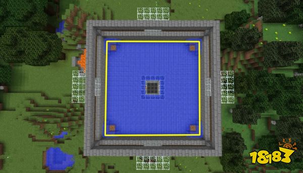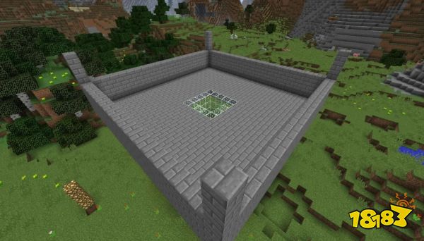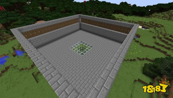 首先用石砖围出一圈5×5的范围