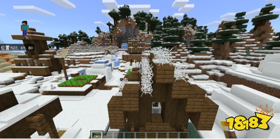 接着我们可以来到坐标(508,Y,36)处,这里有一座罕见的雪地村庄。不过可惜的是,和出生地的村庄一样,这里也被僵尸们占领了。
