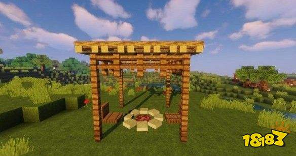 1.用云杉木栅栏和营火做出支架和顶部。