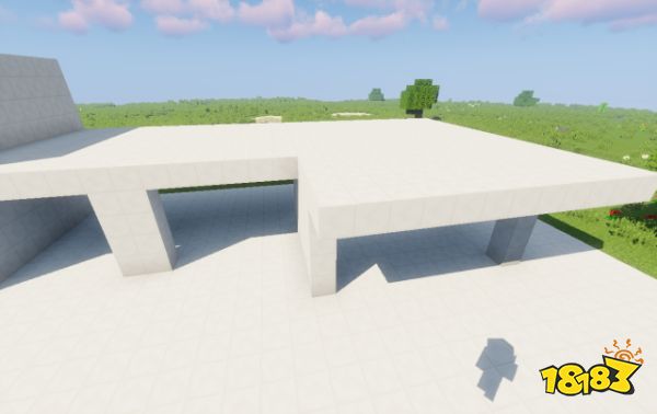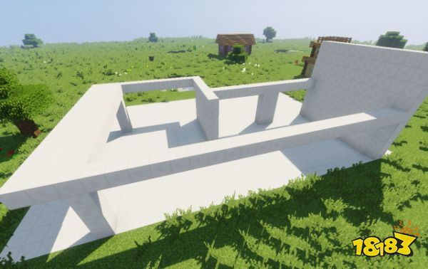 首先,我们纯白别墅所使用的主要材料就是石英块,石英块是制作现代别墅最好的材料,大家可以在下界很轻易地取得。首先我们先把别墅的范围用石英块围起来。